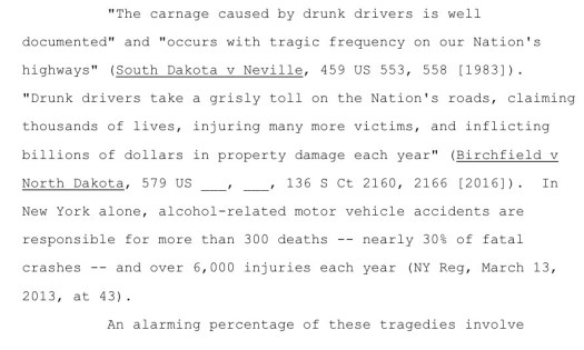 In Matter of Acevedo v New York State Department of Motor Vehicles (Nos. 40, 41, and 42), the Court of Appeals rejected three challenges brought by recidivist drunk drivers to new regulations adopted by the DMV that foreclosed them from getting back their licenses. In Acevedo, the petitioner had three DWI convictions in five years; in Carney, it was six; and in Matsen, three DWIs with two separate six-point speeding violations. The petitioners applied to the DMV for relicensure after their mandatory revocation periods ended, but the DMV denied the applications based on new recidivist DWI regulations that were adopted while petitioners’ applications were pending.